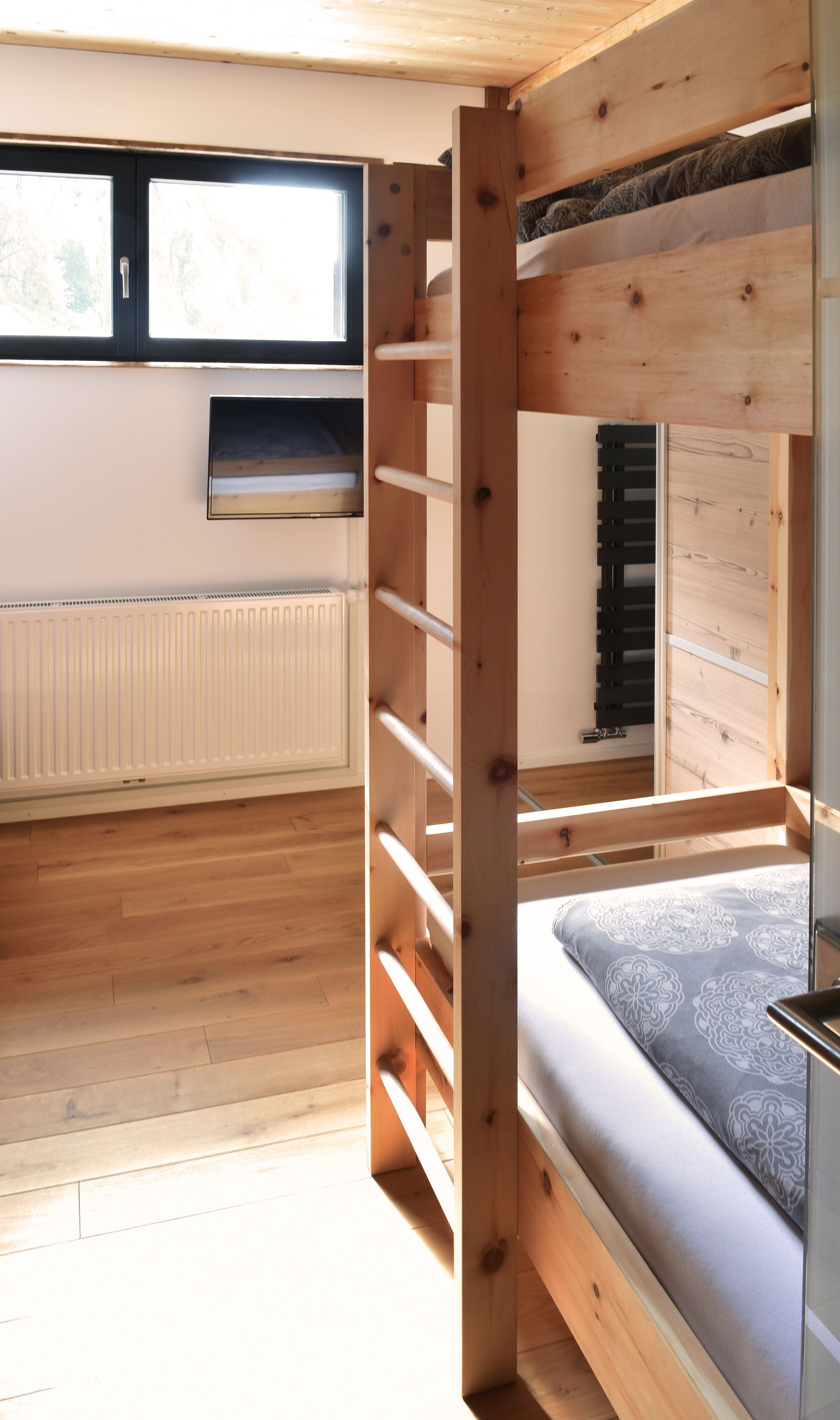 Doppelbett, Etagenbett, Flatscreen-TV, voll ausgestattete Küche (inkl. Küchengeräte, Geschirr, Geschirrtücher, usw.), Föhn, Bettwäsche, Toilettenpapier, Handtücher (werden bei längeren Aufenthalten gerne ausgewechselt), Safe, Balkon mit Sitzgelegenheit & Liegestuhl
